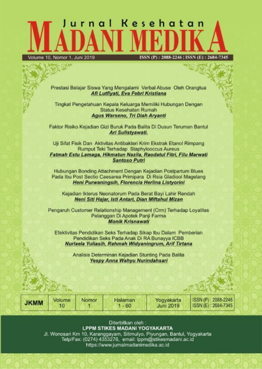 RELATIONSHIP OF ABUSE VERBAL BY PARENTS WITH STUDENT LEARNING ACHIEVEMENTS IN SEDAYU 2ND PRIVATE VOCATIONAL SCHOOL BANTUL YOGYAKARTA